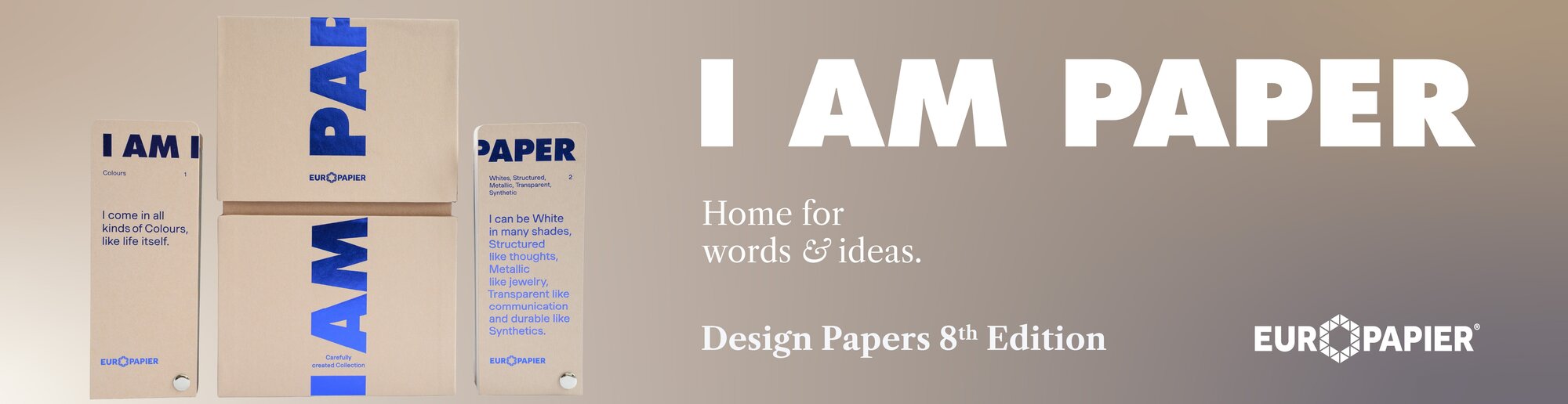 Tohtoročný koncept I AM PAPER stavia do centra pozornosti samotný materiál – oslavuje papier nielen ako médium, ale aj ako kreatívneho partnera, ktorý premieňa nápady na realitu. Papier dostáva svoj vlastný hlas – a v Europapieri sa staráme o to, aby znel naplno a dostal sa k našim zákazníkom. Papier je jadrom našej činnosti, prvkom, ktorý vdychuje život nášmu podnikaniu. Našej vášni. Oslavujeme papier vo všetkých jeho podobách a s pokorou prijímame našu úlohu šíriť toto médium, ktoré sprevádza ľudstvo už tisíce rokov.