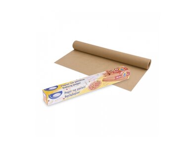 Papier na pečenie v rolke hnedý, vyrobený s vysokou výdržou voči tepelnému poškodeniu. Možnosť piecť do 220°C. Vhodné do cukrární, pizzérií, pekární a pre domáce použitie. Papier je obojstranne impregnovaný silikónom.