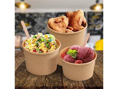 Papierová miska môže poslúžiť na polievky, ale i rôzne iné jedlá či nápoje, ktoré potrebujete udržať v teple. Je jednoduchá na prenášanie a vášmu výrobku zabezpečí správnu teplotu po dlhý čas. Môže byť použitá na polievky, prílohy, šaláty, pochutiny, dezerty, zmrzlinu.