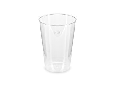 Plastové poháre typu kryštáľ sú vyrobené zo špeciálneho tvrdeného plastu. Materiál imitujúci sklo, vyznačuje sa vysokým leskom a prehľadnosťou s hladkými stenami.