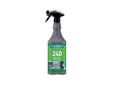 CLEAMEN 240 je silný čistiaci prostriedok určený na odstraňovanie mastnoty a pripálenín z rúr, grilov, digestorov a skiel krbových kachlí. Používa sa neriedený, jednoducho sa nanáša rozprašovačom a po krátkom čase pôsobenia účinne rozkladá aj odolné znečistenie.