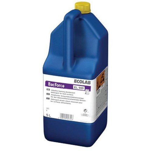 Ľahko odstraňuje tuky, olej, bielkoviny, krv, zvyšky ovocia a ovocné škvrny zo všetkých vode odolných povrchov v oblastiach, kde sa manipuluje s potravinami. Zloženie peny zaručuje vynikajúcu priľnavosť na vertikálnych a šikmých plochách. BacForce EL 9 má baktericídny účinok podľa EN 1276 a fungicídny účinok podľa EN 165. Rýchle, účinné a hygienické odstránenie mastných nečistôt zo stolov, podláh, stien a obkladov. Prípravok sa musí oplachovať.