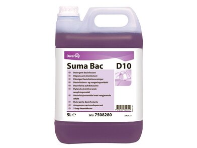 Suma Bac D10 je kvapalný čistiaci a dezinfekčný prostriedok, ktorý čistí a dezinfikuje v jednom kroku. Prostriedok je vhodný na povrchy v potravinárskych prevádzkach. Kombinácia katiónových povrchovo aktívnych látok, sekvestračných činidiel v pufrovacom systéme umožňuje efektívne čistenie a dezinfekciu nezávisle od tvrdosti vody.