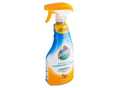 Pronto Multi-Sufrace predstavuje praktického pomocníka pri upratovaní domácnosti. Tento prípravok s rozprašovačom je určený na čistenie najrôznejších povrchov vrátane dreveného nábytku, elektroniky či skla. Plní hneď päť funkcií: povrch čistí, odstraňuje z neho prach, šmuhy aj odtlačky a oživuje jeho vzhľad. Domácnosť navyše prevonia príjemnou vôňou čistoty. Zloženie výrobku šetrne odstraňuje nečistoty bez poškodenia povrchov alebo zanechania šmúh. Vyrobené bez silikónu.