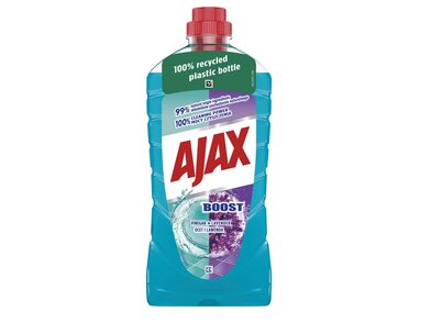 Čistiací prostriedok, ktorý vám pomôže s uprataním celého domu. Ajax je určený na čistenie všetkých povrchov. Zanecháva za sebou príjemnú a dlhotrvajúcu sviežu vôňu levandule, žiarivý lesk a dokonalú čistotu na všetkých povrchoch. Obsahuje ocot, ktorá pomáha rozpustiť nepoddajné škvrny. Vysporiada a sa aj s tou najväčšou špinou. Nezanecháva za sebou šmuhy. Ajax je šetrný k chúlostivým povrchom (mramor, keramika).