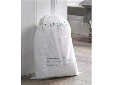 Tieto nepriehľadné vrecká na bielizeň s pohodlnou hornou časťou so šnúrkou, ktorá udržuje odevy v bezpečí, zaisťuje hygienu a súkromie vašich hostí, zatiaľ čo názov a číslo miestnosti umožňujú organizáciu bez námahy. Upozorňujeme, že tieto plastové vrecká na bielizeň nie sú určené na to, aby vydržali ťažké predmety, ako sú posteľná bielizeň a uteráky.