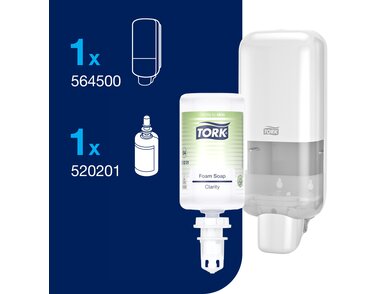 Začnite hygienu rúk jednoducho a efektívne s Tork štartovacím balíčkom, ktorý kombinuje elegantný zásobník v dizajne Elevation a číre penové mydlo na ruky. Tento systém je navrhnutý tak, aby zanechal skvelý dojem, poskytol maximálnu hygienu a zároveň podporil vaše ciele v oblasti udržateľnosti. Dávkovač môźete naplniť vďaka jednotnému sýstemu rôznymi typmi mydiel a dezinfekčných prostriedkov v penovej, tekutej alebo gélovej forme, ktoré sú vhodné pre vaše podnikanie a potreby používateľov. Viete nastaviť veľkosť dávky na optimálnu spotrebu a hygienu. Transparentné okno umožňuje sledovať hladinu náplne.