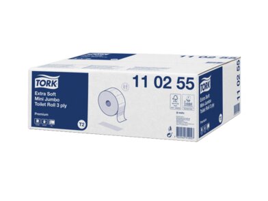 Tork Mini Jumbo extra jemný 3-vrstvový toaletný papier ponúka výnimočný vzhľad a pocit na dotyk spolu s výborným výkonom, a je vhodný do stredne až vysoko frekventovaných prostredí.