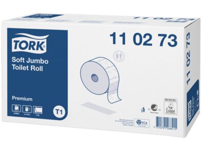 Tork Jumbo jemný dvojvrstvový toaletný papier v kotúči Premium ponúka výnimočný vzhľad a pocit spolu s výbornou kvalitou a je vhodný do vysoko frekventovaných prostredí.