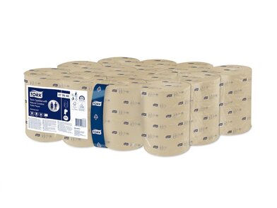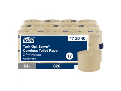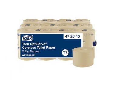 Tork OptiServe® toaletný papier natural je vysokokapacitný, 2-vrstvový bezdutinkový toaletný papier. Ideálny pre komerčné zariadenia a priestory, kde sú komfort, efektívnosť a udržateľnosť prioritou. Je vyrobený zo 100 % recyklovaných vlákien a jeho svetlohnedá farba pochádza z použitia recyklovaných kartónov, čím podporuje ekologickú zodpovednosť a znižuje odpad. Absencia dutinky a krycej vrstvy papiera zaručuje menej odpadu a prispieva k čistému a udržateľnému prostrediu, čo ocenia prevádzky s vysokou frekvenciou návštevníkov.