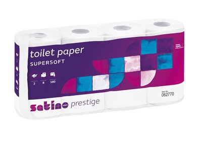 Vysokoabsorbčný jemný biely toaletý papier s návinom 180 útržkov.