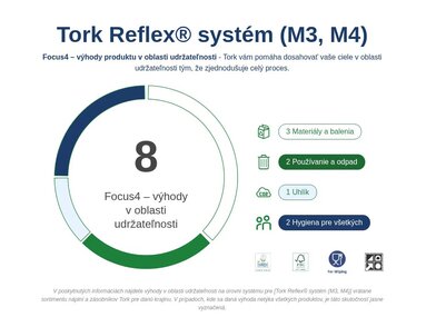 Tento produkt rieši problém nadmernej spotreby a rizika krížovej kontaminácie. V kombinácii so zásobníkom Tork Reflex™ získate hygienické, praktické a ekonomické riešenie, ktoré zvyšuje komfort práce a podporuje udržateľnosť vašej prevádzky.