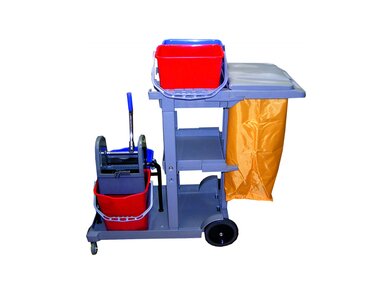 Veľmi pevný plastový vozík z ekonomickej rady profesionálnej upratovacej techniky.