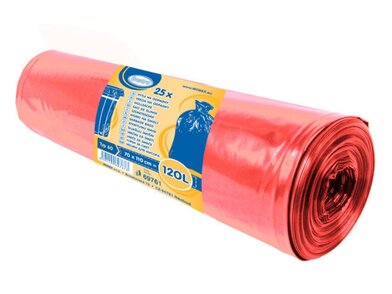 Vrecia na odpad, HDPE, TYP 60, červené, 120L, 40 mikrónov