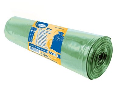 Vrecia na odpad, HDPE, TYP 60, zelené, 120L, 40 mikrónov