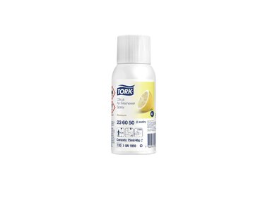 Vôňu vo vašej toalete a umyvárni môžete mať dôkladne a efektívne pod dohľadom vďaka Tork citrusovej vôni do osviežovača vzduchu. Spreje obsahujú vonné oleje a patentovanú zložku neutralizujúcu zápachy na elimináciu nepríjemných zápachov, a zároveň poskytujú dlhotrvajúci pocit čerstvého vzduchu. Spreje sú vhodné do Tork elektronického osviežovača vzduchu.