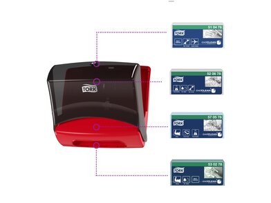Tork zásobníky na skladané utierky chránia náplň pred znečistením a ponúkajú jednorazové vydanie na zníženie spotreby. Nová generácia zásobníkov Tork Performance na profesionálne priemyselné utierky. Tá správna kombinácia zásobníka a utierok zvýši produktivitu a zároveň zníži vaše celkové náklady na prevádzku.