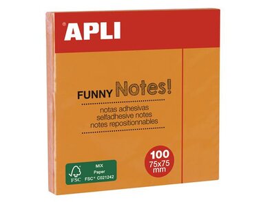 Samolepiaci bloček, 75x75 mm, 100 listov, APLI, neónový oranžový