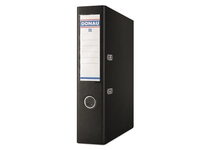 Vhodné na uchovávanie dokumentov A4. Zvonka PP povrch, zvnútra kartón. Pákový mechanizmus vysokej kvality s ochranným spodným kovaním a s chrbtovým otvorom a vymeniteľným obojstranným chrbtovým štítkom.